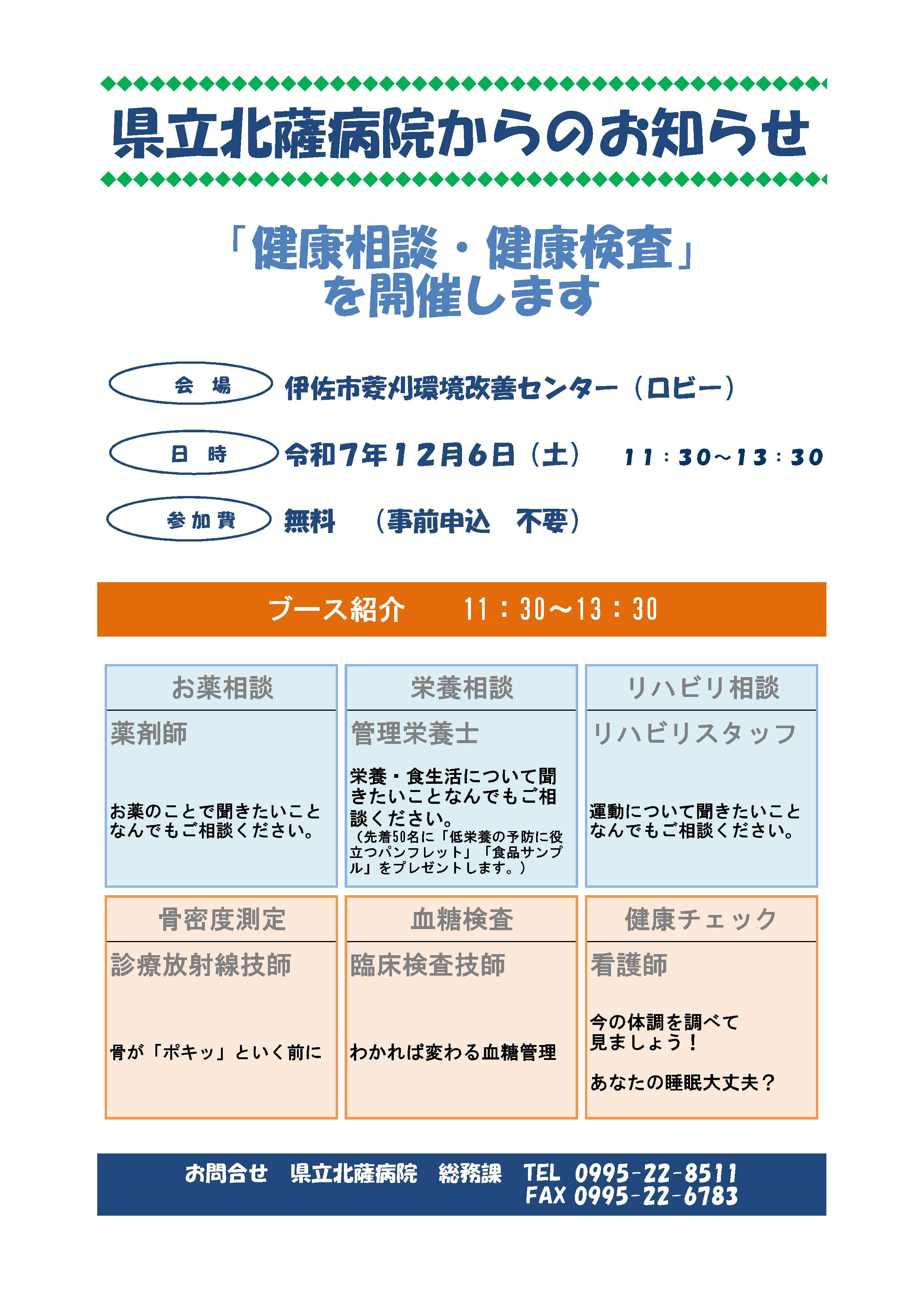 R7.12.6(土)「健康相談・健康検査」を開催します